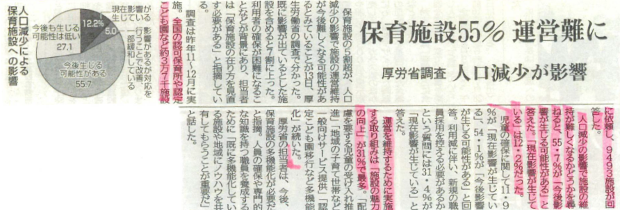 東京都では、約3割の施設に定員割れの減少が出ており人口減少の影響下にある自治体では、定員割れによる保育所の運営が困難と考えられ行政任せではなく自園での対策が急がれています。